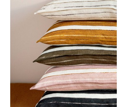 COUSSIN SECRET STRIPE | 40cm x 55cm | 100% LIN IMPRIME | BLACK